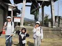 城山下の公園で遊んだ後、城山に登りました。ちょうどお昼前だったので、鐘撞き堂の前で待機し、12時の鐘を鳴らすのを見ました。大きな鐘の音が12回鳴りました。城山でお昼ご飯でした。