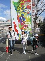 最後は、野口遵記念館の方へ行きました。大ホールの広さときれいさに感動していました。大きなステージの上で大はしゃぎでした。記念館周辺が11日の西日本マラソンの会場となっていたので、スタート・ゴール地点に行きました。