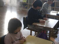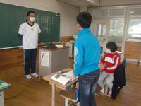 2月14日(水)は、熊野江小の2年生が来て、1年生と合同学習でした。バスで移動をしてきて、2時間目からの合同学習でした。