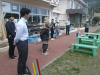 3月22日(金)の3校時に、空飛ぶ新玉ねぎなどの収穫をしました。地域の方にも呼びかけをしていたので、たくさんの方々がお見えになり、一緒に収穫作業をしていただきました。まずは、新玉ねぎを収穫しました。200個ほどあった玉ねぎは、あっという間に収穫されました。その後、小カブと春菊の収穫もしました。ちょうどよいくらいの大きさになっていたので、地域の皆さんも喜んで採ってくださいました。今年度の野菜の収穫はひとまず終わりです。1年間御協力ありがとうございました。