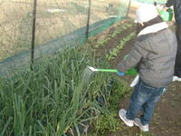10月に植えた空飛ぶ新玉ねぎ(極早生)は、もうすぐ収穫の時期に入ります。2月は最後の追肥の月で、週に2回ぐらいずつ液肥を与えてきました。3月1日は最後の追肥(肥どめ)をしました。大きな玉ねぎもできてきています。3月の中旬くらいの収穫が楽しみです。