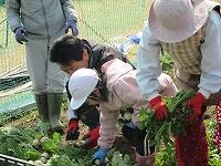 3月22日(金)の3校時に、空飛ぶ新玉ねぎなどの収穫をしました。地域の方にも呼びかけをしていたので、たくさんの方々がお見えになり、一緒に収穫作業をしていただきました。まずは、新玉ねぎを収穫しました。200個ほどあった玉ねぎは、あっという間に収穫されました。その後、小カブと春菊の収穫もしました。ちょうどよいくらいの大きさになっていたので、地域の皆さんも喜んで採ってくださいました。今年度の野菜の収穫はひとまず終わりです。1年間御協力ありがとうございました。