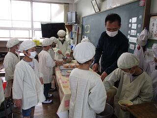 今週より2年生が給食当番活動を開始しました。これまでは5年生が配膳を行ってくれていましたが、自分たちで準備しています。重い食缶を運んだり均等に継ぎ分けたりと新しい経験ばかりですが、みんなで協力して頑張っています。