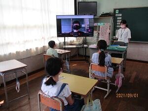 始業式は、タブレット等を活用し、オンラインで行われました。