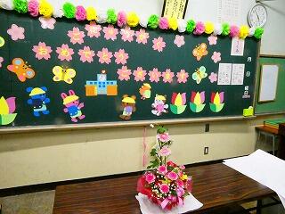 式場準備を6年生児童と職員で行いました。新1年生を全校児童、全職員一同心待ちにしています。