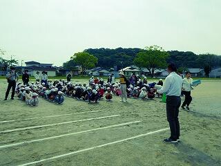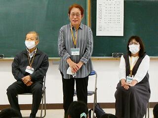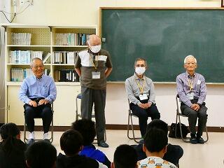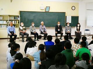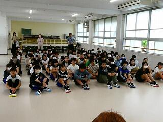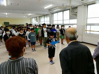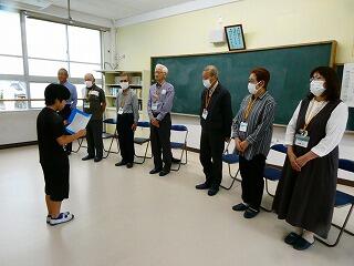 はげまし隊はNPO法人として延岡市内の小中学校で授業支援を行っている組織で、一ヶ岡小学校では、今年度からはげまし隊に授業支援をお願いすることになりました。主に5、6年生の算数授業に来てもらうことになります。対面式では、隊員の方より一人ずつ自己紹介をしてもらい、6年生代表の児童が歓迎の言葉を述べました。