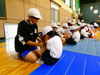 みんな一言もしゃべらず、真剣な表情で「いのちを守る訓練」に臨んでいました。さすがの「いちおかっ子」でした。