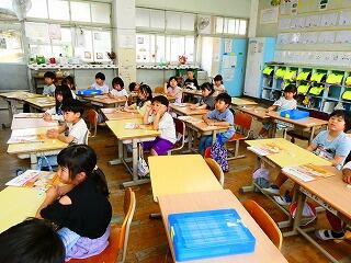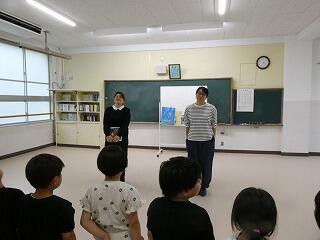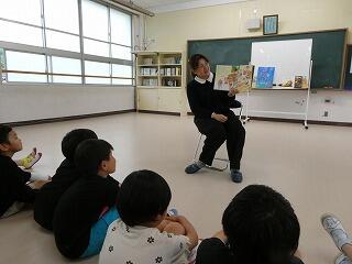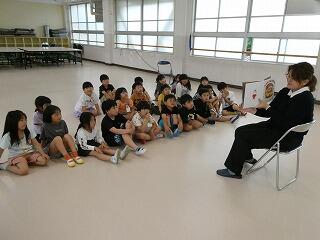 本校の読み聞かせはPTAの図書部「おひさまの声」の方々が来校して読み聞かせしてくださいます。第1回目は1年生。疲れのでる5時間目でしたが、みんな静かに集中して楽しみながら絵本の世界に入り込んでいました。
