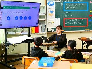 めあては「なんことなんこにわけられるかな?」です。数の分解の学習で、引き算の前段階になります。何度も繰り返し行うことで、スムーズに答えられるようになってきます。1年生頑張っています!