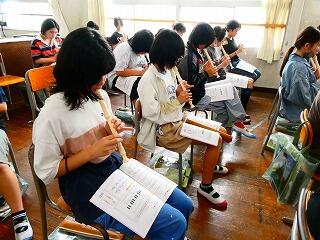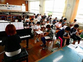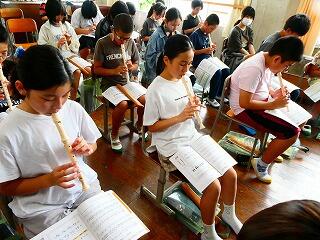 この日は「マルセリーノの歌」で、パート別のリコーダー演奏練習に取り組んでいました。一ヶ岡小の音楽室は職員室の上にあるので、元気な歌声や演奏のハーモニーが職員室に心地よく響きます。