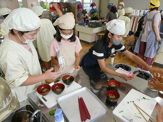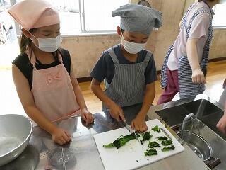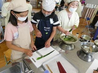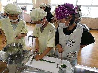 5年生が家庭科の授業ではじめての調理実習を行いました。