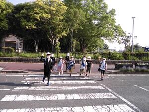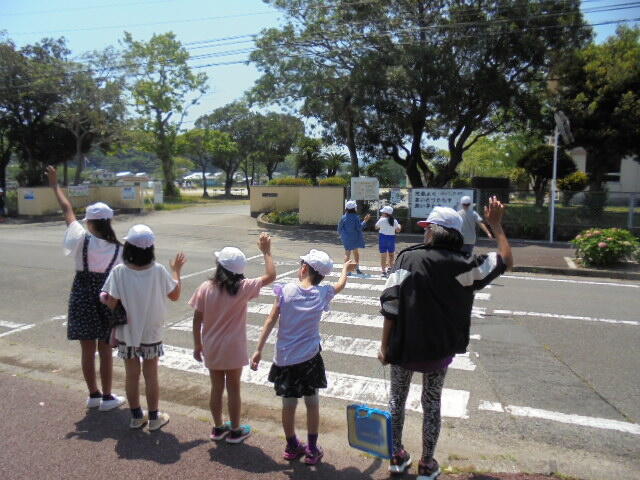 道路の横断の仕方を登校班ごとに練習しました。今日学習したことをこれからの生活に生かして、右左を確かめて安全に横断しましょう。決して飛び出すことのないようにしましょう!
