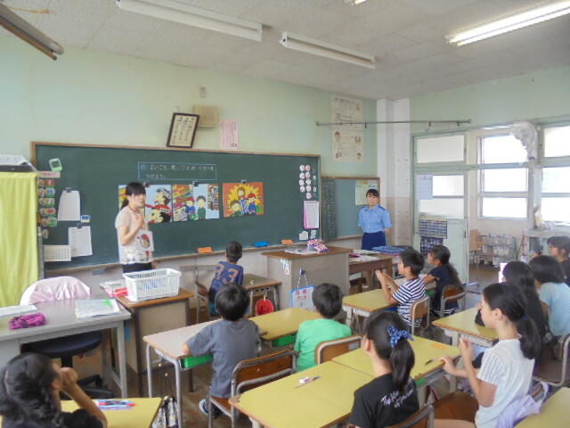 本日は、延岡警察署の方を招いて非行防止教室を行いました。