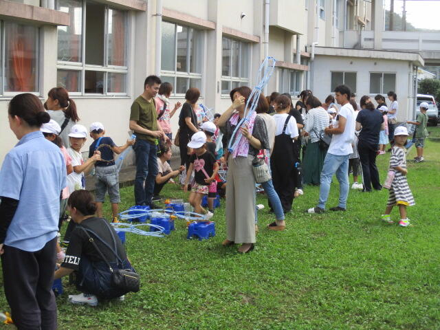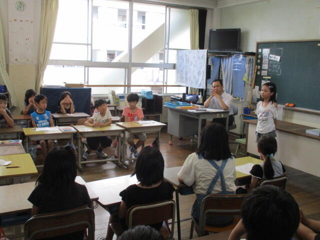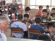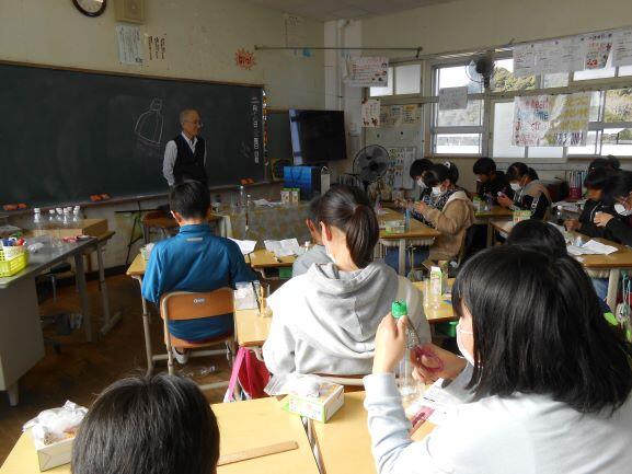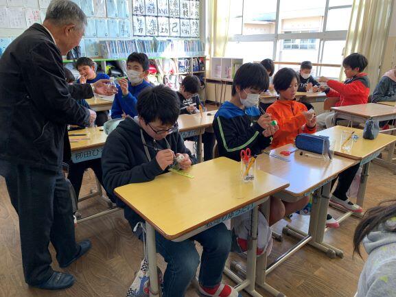 野口遵顕彰会より二人の先生に指導に来ていただき、ペットボトル風力発電機づくりに挑戦しました。科学者になった気分の子どもたちにとって、物づくりや科学、エネルギーなどの言葉を身近に感じる貴重な時間となりました。