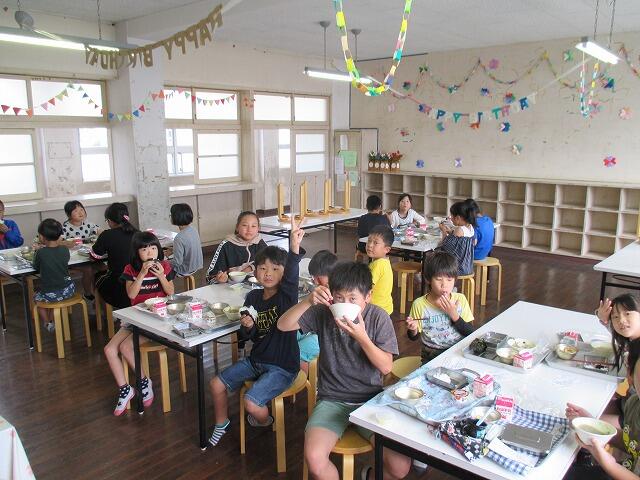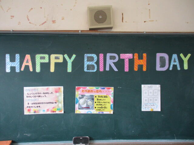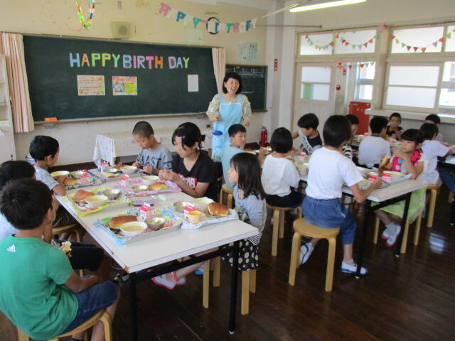 6月の誕生給食がありました。全校児童から元気いっぱいの「誕生日おめでとう」の祝福を受けました。
