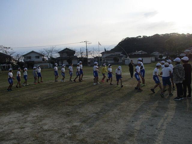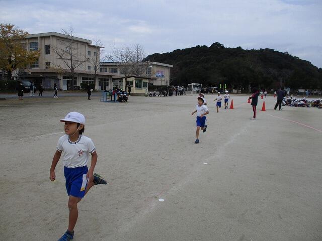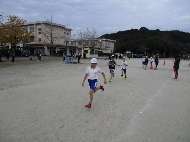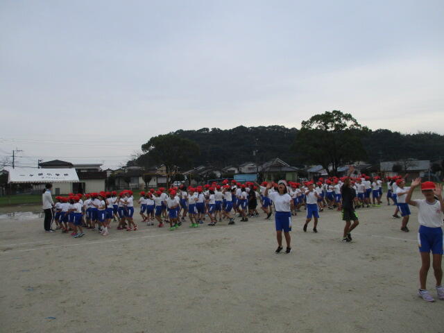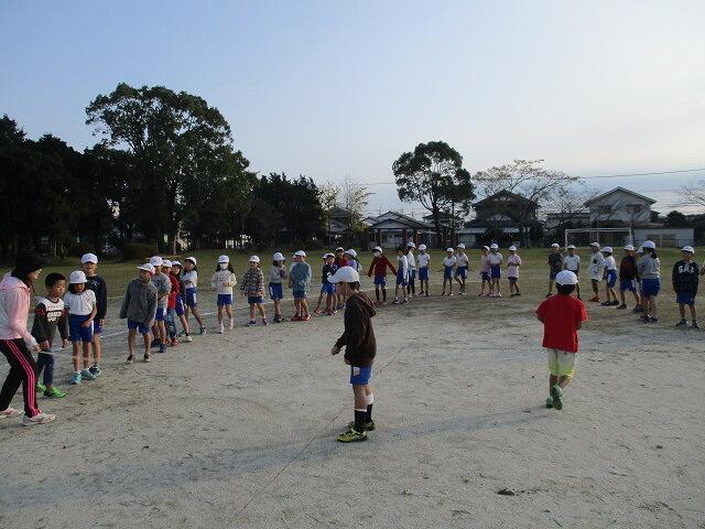 冷たい風の吹く運動場ですが、縄跳びをする児童が増えてきました。