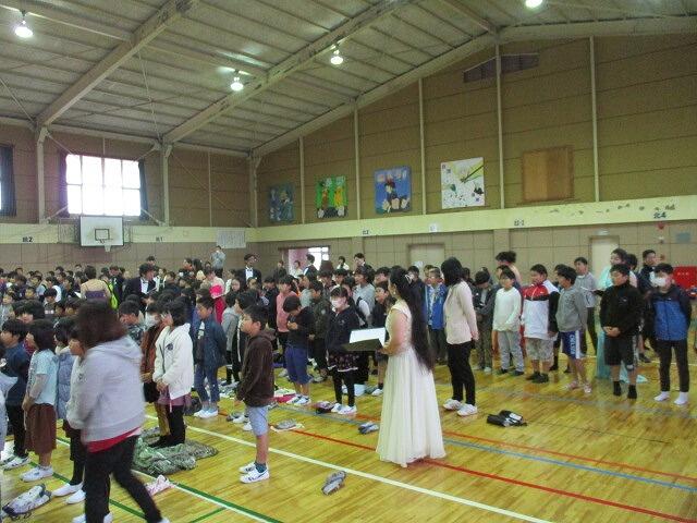 全校生徒から一斉にハッピーバースデイの歌を歌ってもらいました。
