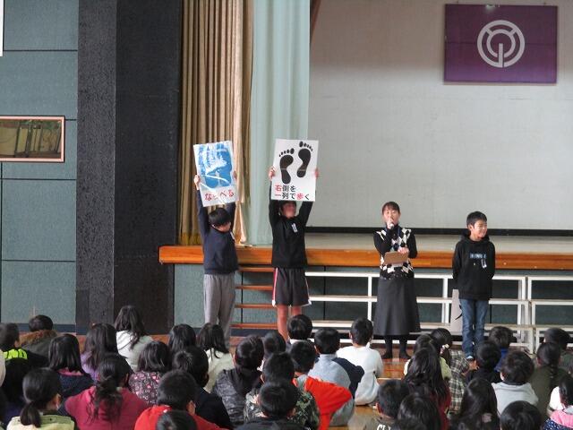 また、今朝、地域の方が「子どもたちのあいさつがよかったよ。」と声をかけてくださいました。とてもうれしかったです。あいさつを元気よくしてくれる人が着実に増えてきていると思います。あいさつをしてもらった人はうれしい気持ちになります。これからも地域の人にも進んであいさつし、地域の人にも喜んでもらいましょう。