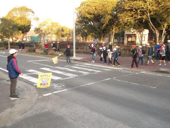 今朝の登校の様子です。先日の交通安全教室で学習したことを生かして道路を横断していました。