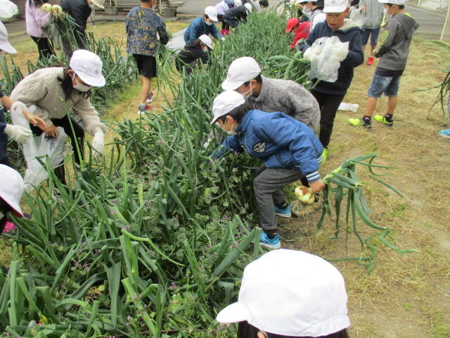 3年生は玉ねぎの収穫をしました。たくさんの玉ねぎが収穫できて子どもたちも大喜びでした。11月の苗植え体験ではJAの佐藤彰様にご指導いただきました。本当にありがとうございました。