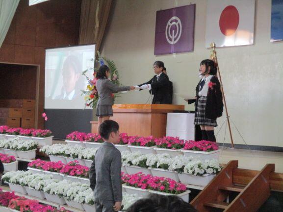 規模を縮小し、6年生、保護者の皆様、職員の出席による卒業式を行い