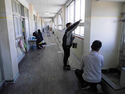 4月22日からの臨時休業期間中に、子どもたちのために何かできることはないか考えました。そこで、思い付いたのが、老朽化した校舎内のペンキ塗りです。突然の計画でしたが、先生方が積極的に協力してくださり、当初の計画以上にいろんな所を塗り、明るくすることができました。ただ、みんな素人なので職人さんのように完璧には塗れませんでしたが、少しでも明るい環境を作ってあげたいという先生方の子どもたちへの温かく優しい思いを感じることができました。きっと子どもたちも喜んでくれたと思います。