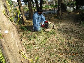 砂場の草取り