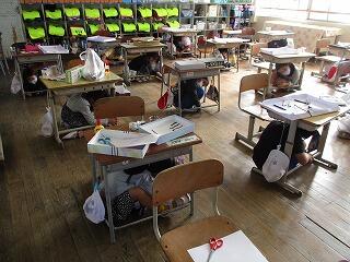12月13日(月)に、避難訓練(地震・津波)を行いました。地震の放送で机の下に隠れ、揺れがおさまった放送で運動場に避難し、人数を確認した上でファーツリーゴルフ場近くまで避難しました。