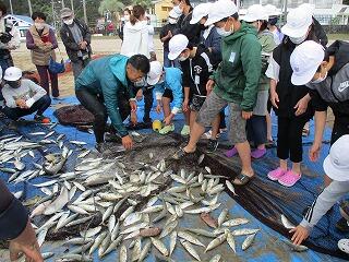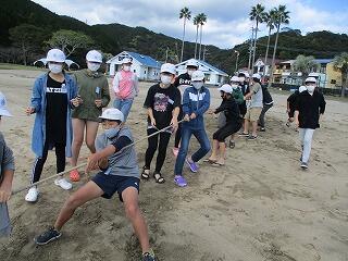 ・須美江海岸で地引網体験
