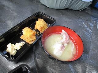 ・とれたてのお魚を使ったフライと味噌汁の実食