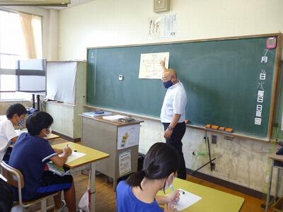 生徒指導担当の話では、夏休み中に自分の命を守る行動のキーワードとして、「水」「車」「火」「人」を挙げ、それを心にとめて生活することを指導しました。