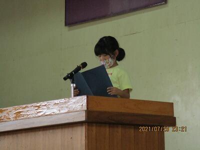 まず、2年生と6年生の代表児童が、1学期に頑張ったことやこれからの新たな目標について発表しました。