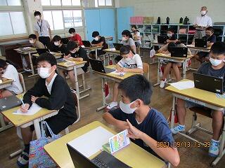 始業式は、タブレット等を活用し、オンラインで行われました。