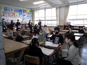 相手の目を見て、大きなジェスチャーをすることがポイントです。みんな笑顔で初めての外国語活動に親しんでいました。これからもみんなで楽しく勉強をしていきます。