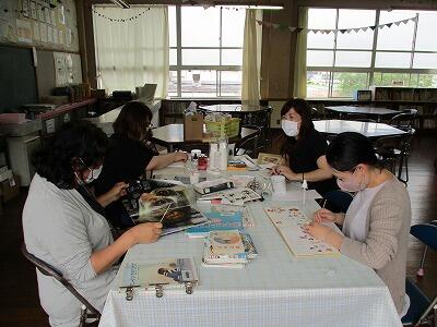 5月19日(水)に、読み聞かせサークル「おひさまの声」のみなさんが、図書室の整備に来てくださいました。この日の活動は、破損した本の修理です。また、別の日には、図書室の掲示物も作成してくださっています。