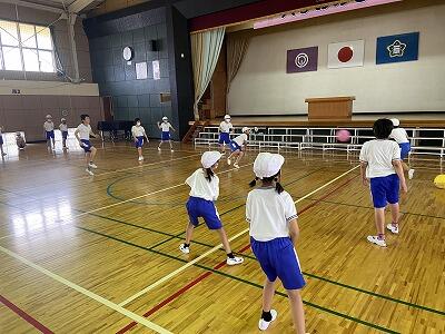 4年1組と4年2組の子どもたちが、一緒に体育館で遊んでいました。