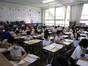 教室背面にふと目をやると、1学期の学級目標が掲示されていました。そこには、「当たり前のことを当たり前に実践する!~友だちへの優しさ・無言の徹底・真面目な授業態度~」と書いてありました。