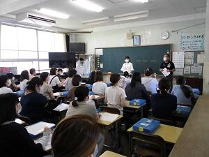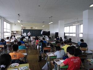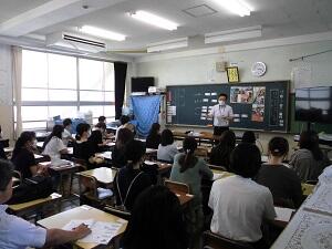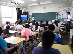 宮崎県動物愛護センターの先生方を招いて、動物たちの命を取り上げながら命の大切さについて考える授業を行っていただきました。