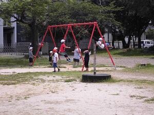 今日の昼休みの様子です。ドッジボールや鉄棒、ブランコ、タイヤ、ジャングルジム、トンネルなど、子どもたちはさまざまな遊びをしていました。