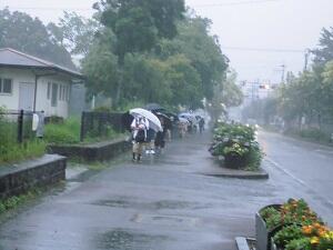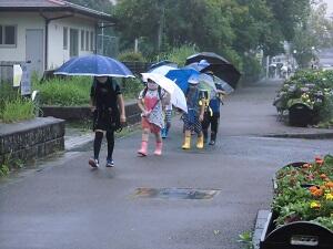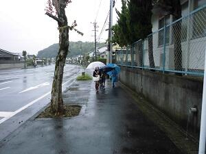 雨の中でもがんばって登校!