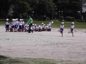 3校時に1年生が体育の学習をしていました。かけっこをがんばっていました!