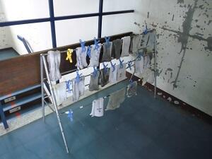 9月は、「雑巾かけ」に挑戦しています。雑巾をきれいに2つ折りにして洗濯ばさみで留めていきます。これは、今日の1年生の雑巾かけです。