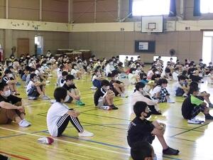 暑い中にもかかわらず、みんな素晴らしい姿勢で先生方の話を聞いていました。1学期最後の1日もしっかりがんばった子どもたちでした。