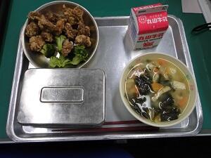 今日の給食は、宮崎地頭鶏の酢鶏でした。今日もとてもおいしかったですね。