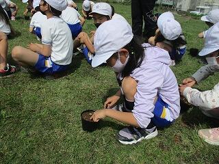 4月28日。講師をお迎えして、2年生が生活科の時間に、綿の種の植え付けをしました。子ども達は、綿の種の植え方について説明を聞いた後、1つのポットに2粒ずつを蒔きました。これからどのように生長していくか観察を続けながら、コットンの収穫までお世話をしていきます。
