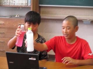 9月13日。運動会に向けてオンラインで結団式を行いました。団長が振ると色の変わる水の入ったペットボトルを手にし、合図と同時に大きく振りました。すると、透明だった水の色がどんどん赤、白に変化しました。画面越しに様子を見ていた子どもたちから、「おお~」と声が上がっていました。