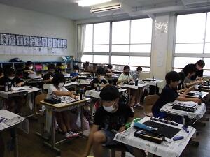 5年生は、毛筆習字の練習に真剣に取り組んでいました。