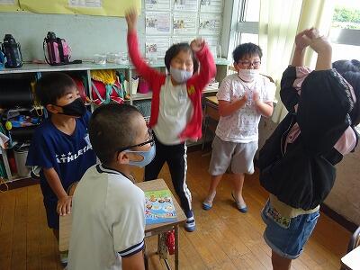 4年1組と4年2組の子どもたちが、一緒に体育館で遊んでいました。