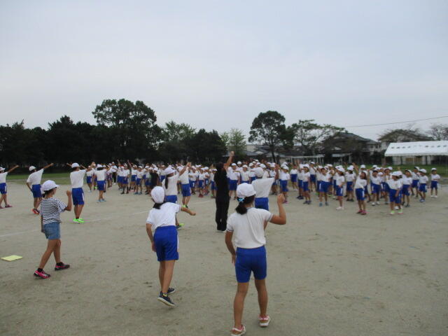 9月10日(火)は雨で延期になっていた1回目の運動会全体練習がありました。開会式の隊形や入退場の仕方、綱引きの隊形を練習しました。
