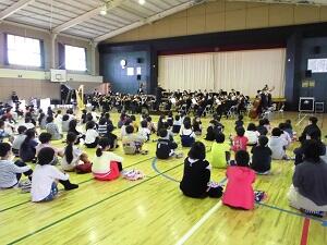 今回は、文化庁の事業で、広島交響楽団の方に来ていただきました。何十人もの演奏家による演奏はとても迫力があり、子どもたちはみんな食い入るように見ていました。プロの演奏家の生の音楽に触れることで、音楽家を目指したいと思った子どもたちもいたのではないかと思います。